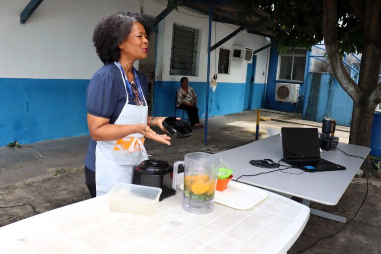 A receita leva couve, maracujá e suco de limão. O suco deve ser consumido sem coar, para manter as fibras e agir em benefício do funcionamento digestivo. O Sesi visa a promoção de uma alimentação saudável por meio de Educação Alimentar e Promoção da Saúde nas indústrias sergipanas. Palestrou, a nutricionista do SESI e Especialista em Saúde Integrativa, Daiana Oliveira de Melo. Ensinou o ‘Suco da Horta, a auxiliar do Programa de Alimentação e Nutrição, Edilde Santos Santana.