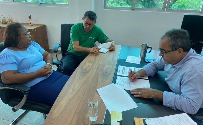 O presidente do Instituto de Desenvolvimento Rural do Tocantins (Ruraltins), Adeniuex Rosa Santana, recebeu a prefeita de Taipas, Maria do Socorro, para tratar dos detalhes do termo de cooperação técnica que será assinado em breve.